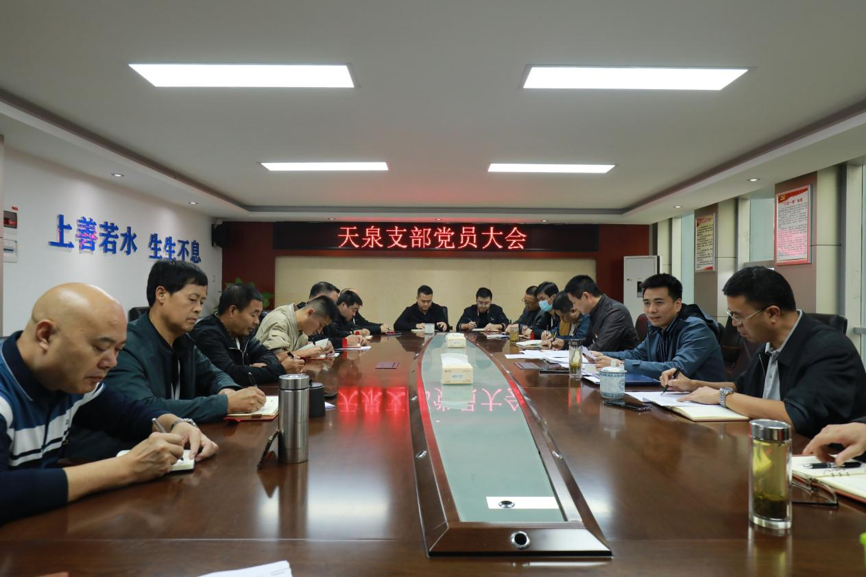 2022年10月27日下午,天泉支部在公司4樓會(huì )議室召開(kāi)支部黨員大會(huì ),傳達學(xué)習黨的二十大和黨的二十屆一中全會(huì )精神,深刻學(xué)習領(lǐng)會(huì )習近平總書(shū)記重要講話(huà)精神。會(huì )議由支部書(shū)記鐘洪勇主持,全體黨員、入黨積極分子參加。